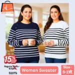 | ১০০% কটন Ladies Sweater – Export Brand, Eco-Friendly ও Stylish – Body cream color with navy blue stripe., Body Navy blue color with cream stripe, S ৳ 600.00 Original price was: ৳ 600.00.৳ 510.00Current price is: ৳ 510.00.